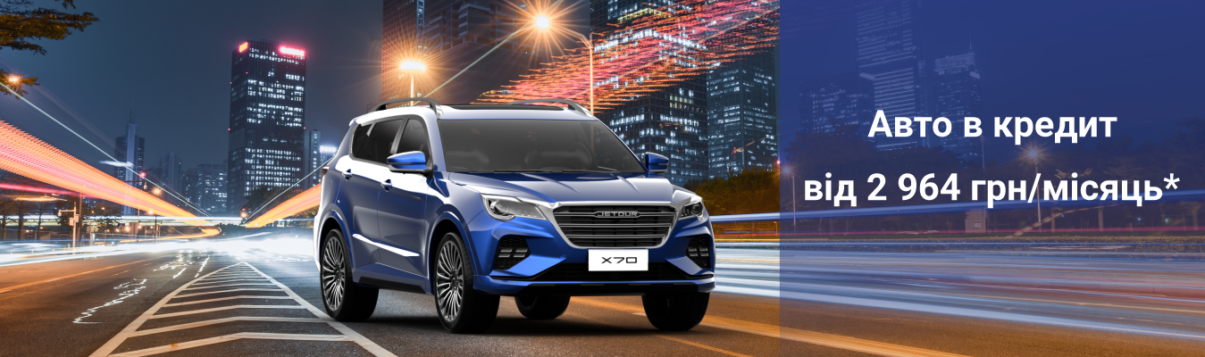 [*] Щомісячний платіж по кредиту в сумі 2 964 грн/місяць розрахований за умов вартості автомобіля Jetour X70 FL (5 MT, Luxury, 2022 р.в.) 699 300 грн включно з ПДВ станом на 27.01.2023 р., строку кредитування 84 міс., власному внеску 70%, схемі погашення ануїтет, номінальній процентній ставці 4,99% річних у гривні.